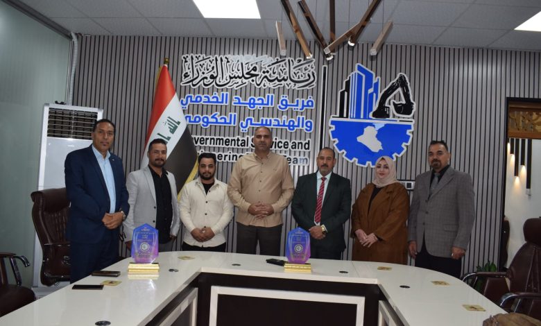 رئيس الاتحاد العام للأعلام الإلكتروني فرع الديوانية يزور فريق الجهد الخدمي والهندسي الحكومي
