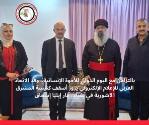 زار وفد من الاتحاد العربي للإعلام الإلكتروني، برئاسة الدكتور صالح المياح، وبمشاركة الأستاذ علي قيس الشيخ زبار والصحفية مروج العبيدي، أسقف كنيسة المشرق الآشورية-ابرشية بغداد
